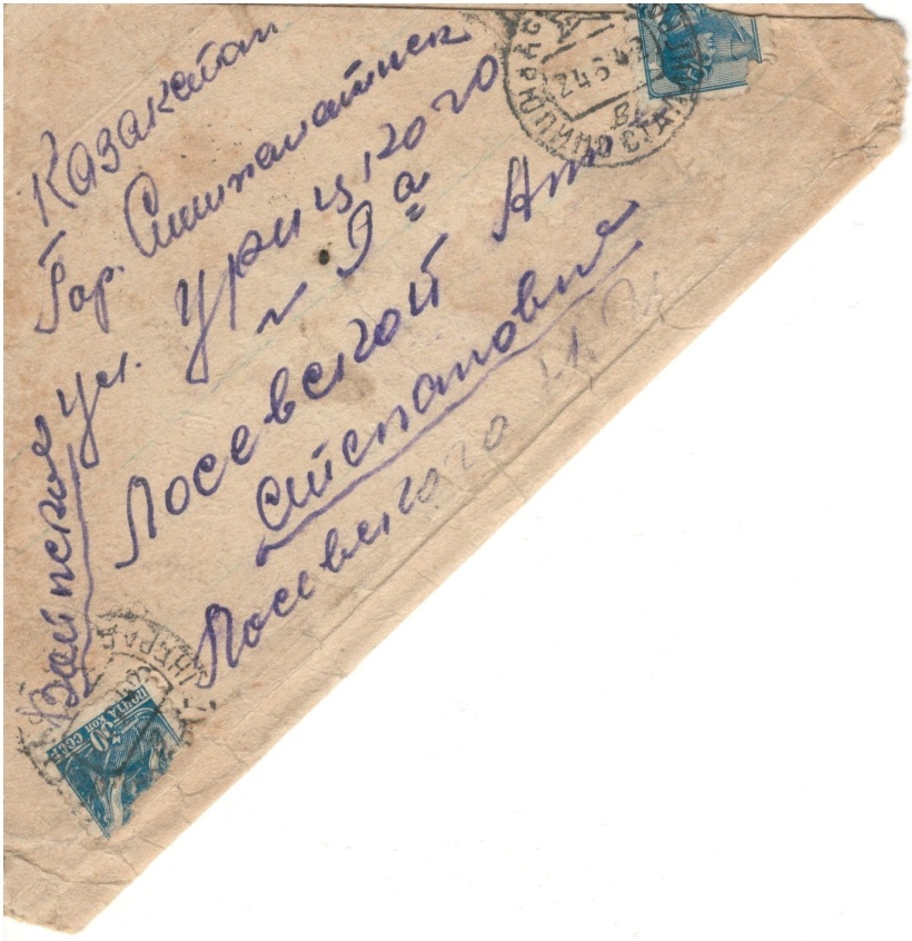 А. Ибраевтің туған – туыстарына жазған хаты / Письмо А. Ибраева родственникам.