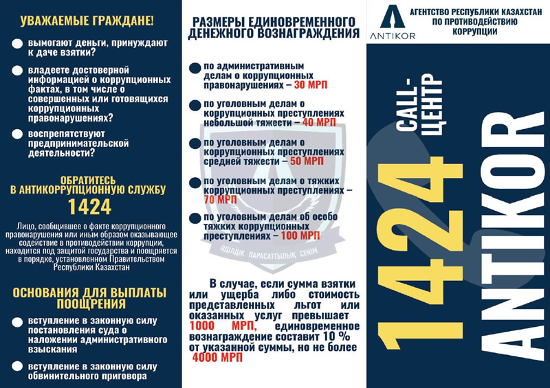 до 4000 МРП (до 14 млн тг.) – call-центр 1424 (звонок бесплатный).