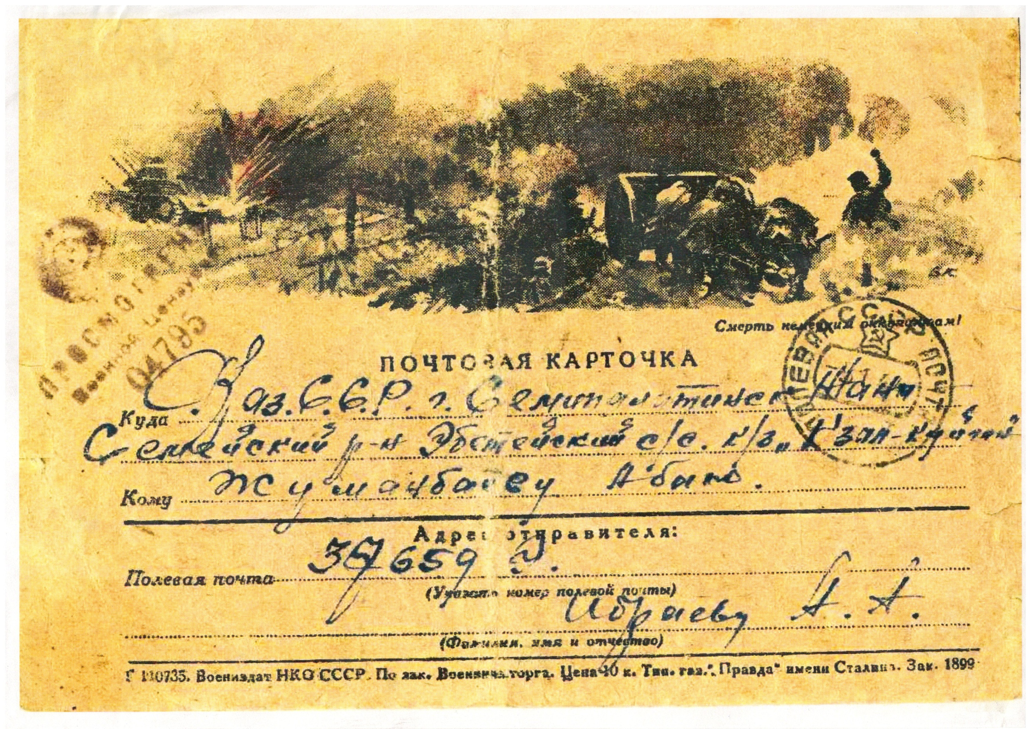 А. Ибраевтің туған-туыстарына жазған хаты / Письмо с фронта А. Ибраева родным