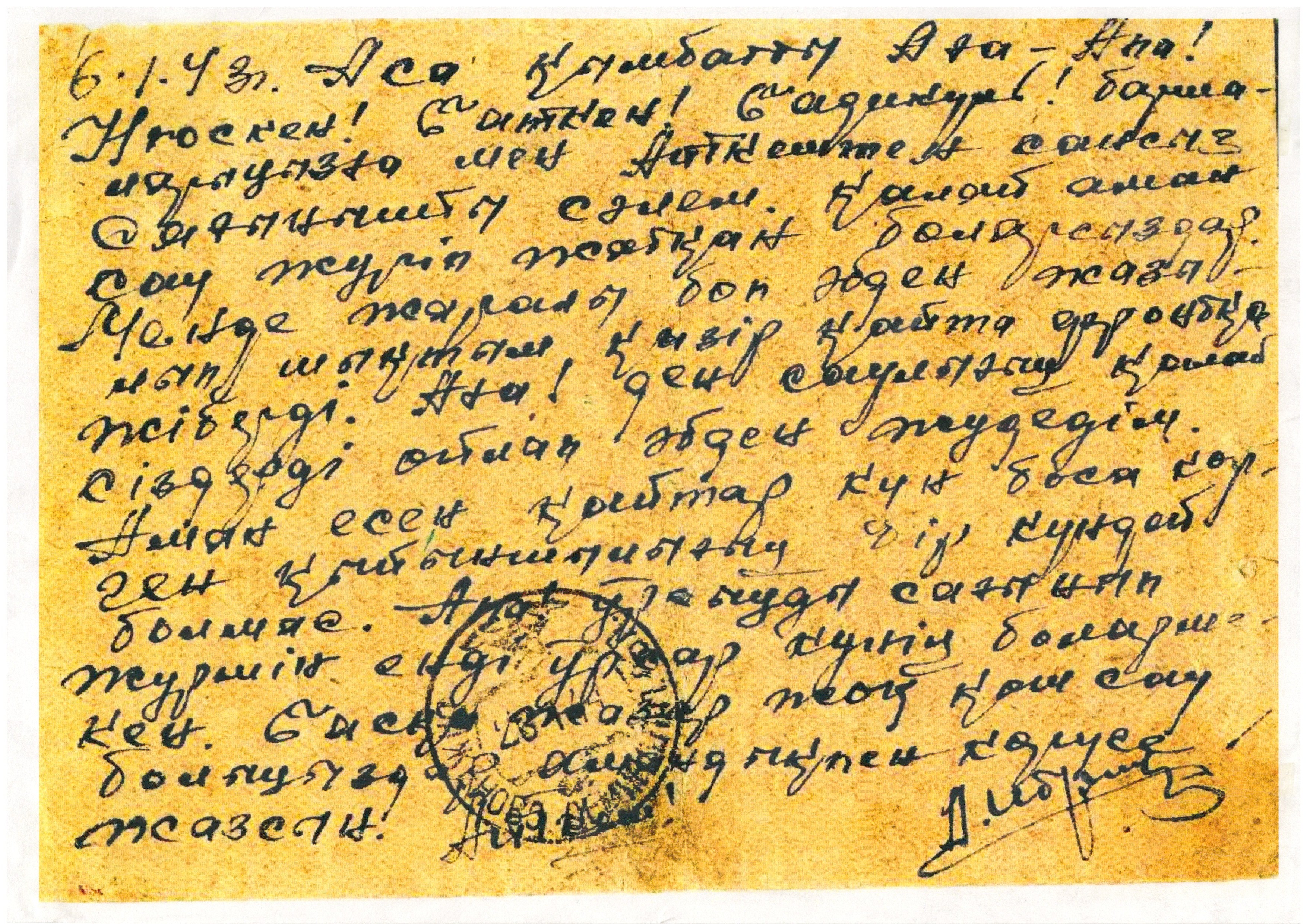 А. Ибраевтің туған – туыстарына жазған хаты / Письмо А. Ибраева родственникам.