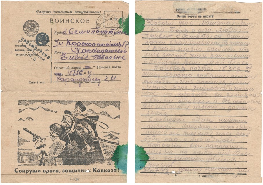 Г.И.Карандашева фронттық хаты / Фронтовое письмо Карандашева Г.И.