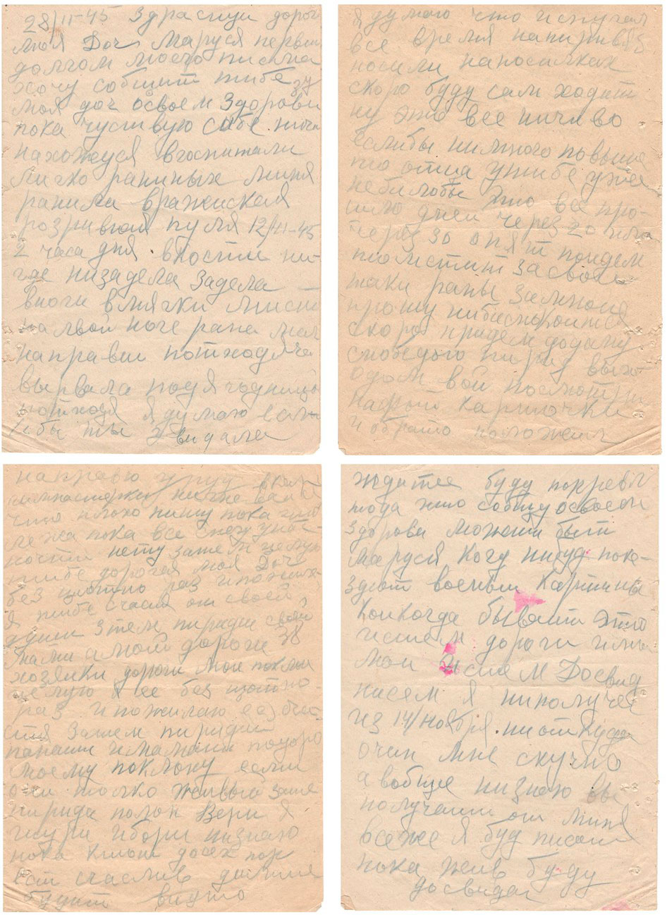Белгісіз жауынгердің қызы Марусяға арналған госпитальдан хаты 28.02.1945 ж. / Письмо неизвестного бойца дочери Марусе из госпиталя. 28.02.1945 г.