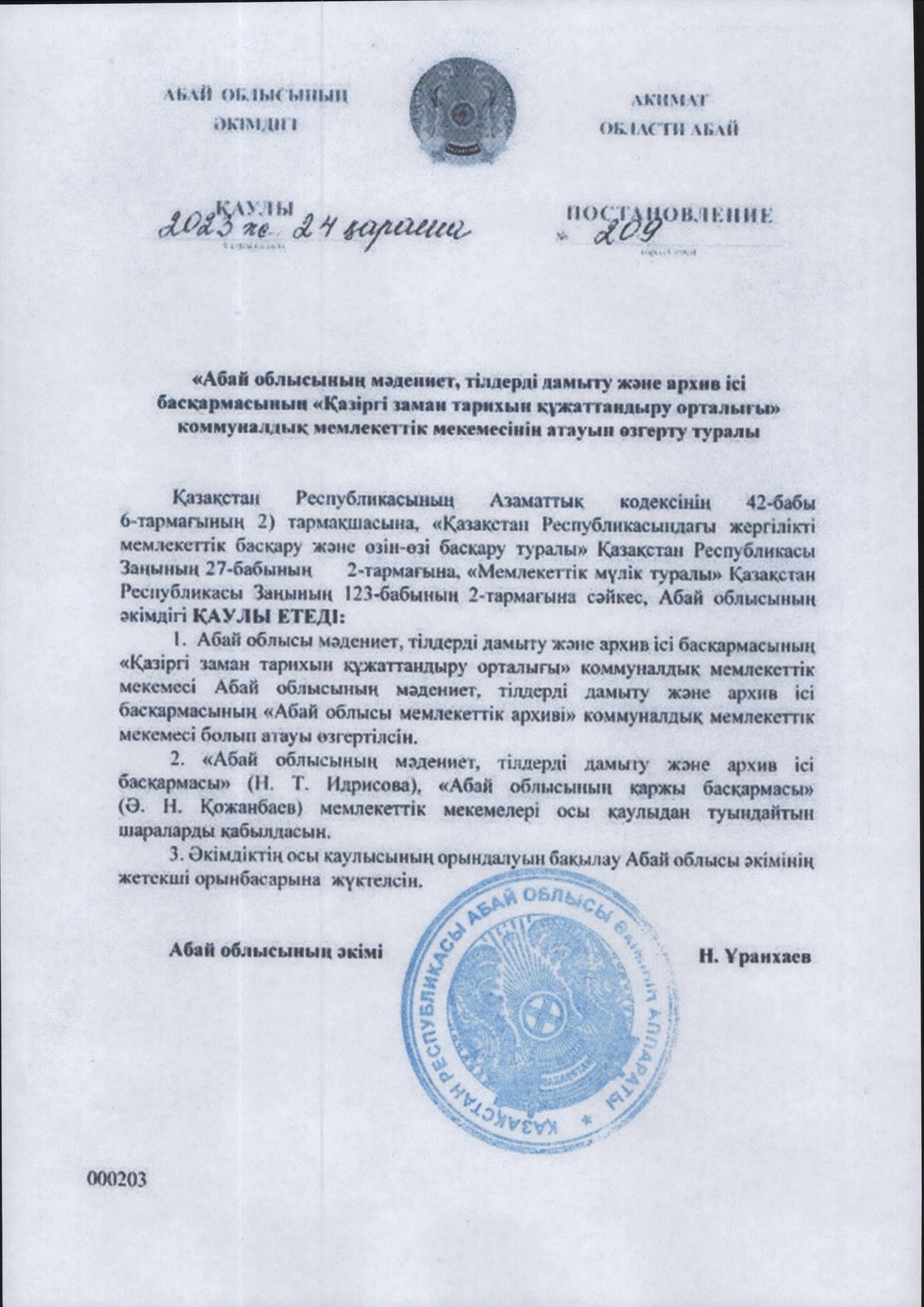 Абай облысының мемлекеттік архивіне 105-жыл