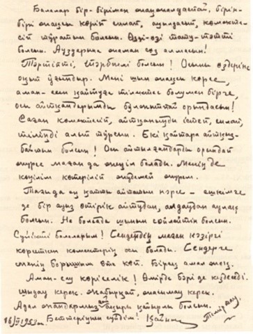 Қ. Мұхамедхановтың Карлагта отырып балаларына жазған хаты