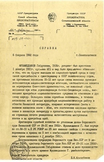 Карлагтағы жолдасының Қ. Мұхамедханов жайлы естелігінен, 1954 ж.