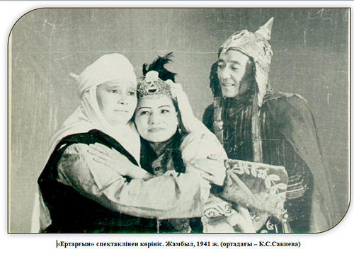 На артистку Семипалатинского Областно Обединенного казахско-русского музыкально-драматического театра имени Абая Сакиеву К.- Зас.артистка Каз ССР.