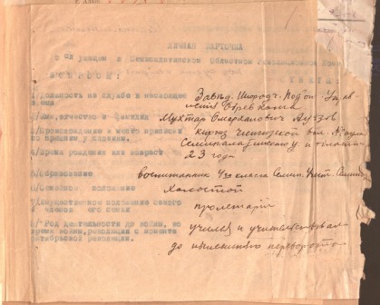 Документы писателя, общественого деятеля Мухтара Ауэзова