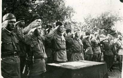 «Получая Гвардейское знамя, поклянемся же, товарищи, нести его на Запад до окончательного разгрома немецко-фашистских захватчиков, осквернивших нашу землю своими кровавыми лапами!